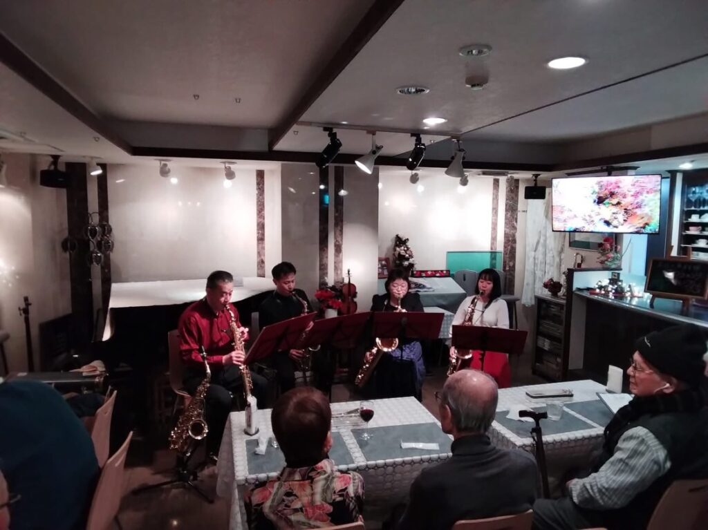 11月のコンサートも心温まる時間でした。リコーダーとピアノの軽快なアンサンブル、ジャズヴァイオリンの陶酔的な音色、そして齋藤ファミリーによるサックス四重奏の感動的な響き、ソプラノとピアノの華麗な歌声が毎週土曜の夜を彩りました。